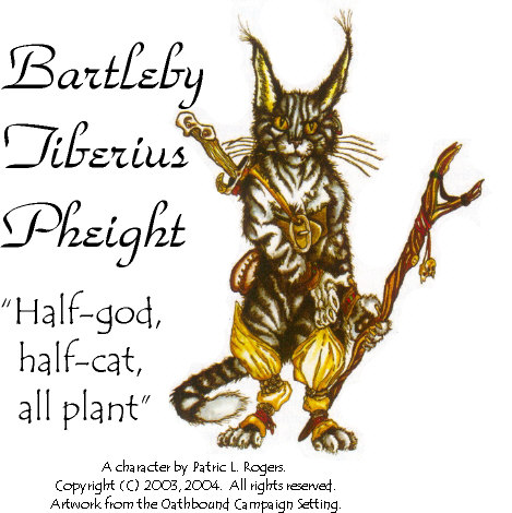 Bartleby is a Frey, from the Oathbound Campaign Setting by Bastion Press. These Small humanoid cats are, well, they're catmen (or catgirls, if you